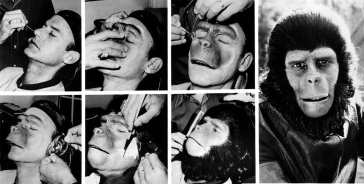 Roddy McDowall being transformed into Cornelius on the set of Planet of the Apes (1967)