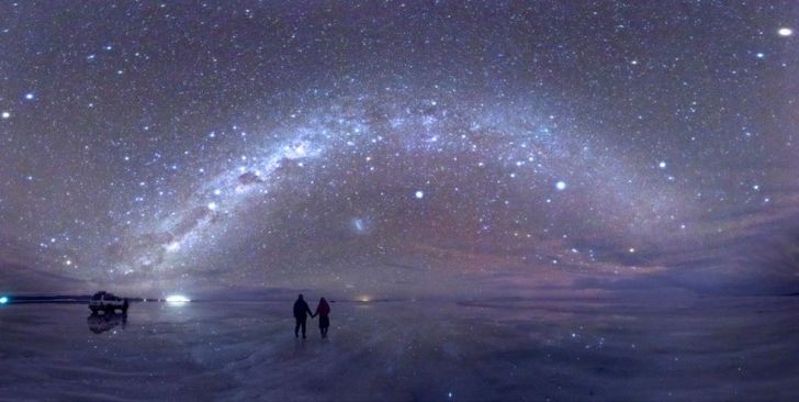 Night sky reflected in Salar de Uyuni, a large salt flat in Bolivia