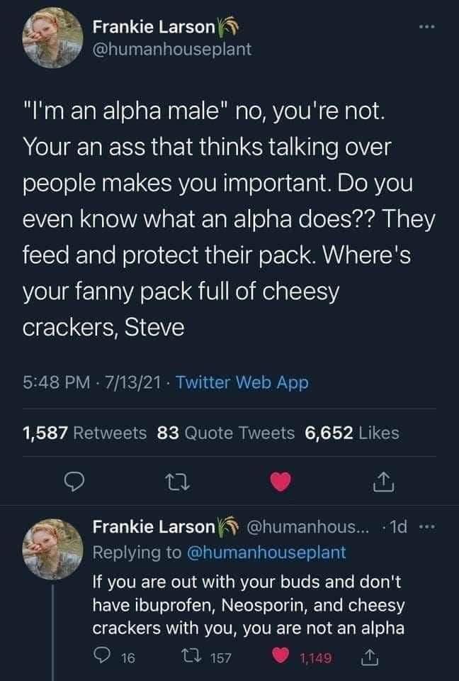 real alphas have cheesy cracker on the ready